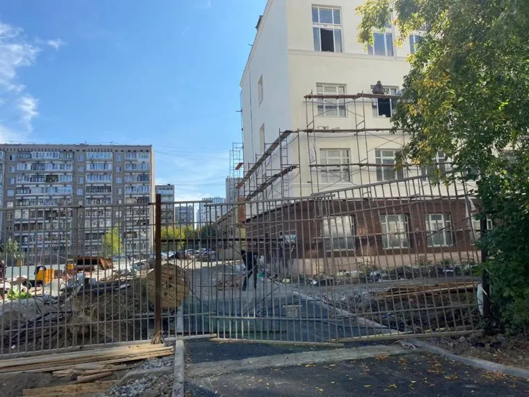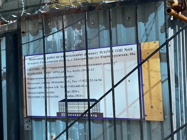 11:56 Ученики школы №68 остались без линейки из-за капремонта учреждения — там обновляют фасад. Согласно табличке, работы должны закончить к концу года.