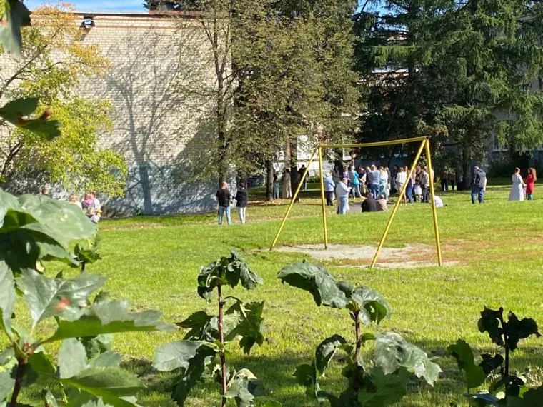 12:25 Линейка гимназии №144 закончилась. Родители остались ждать детей на заднем дворе учреждения и у входа.
