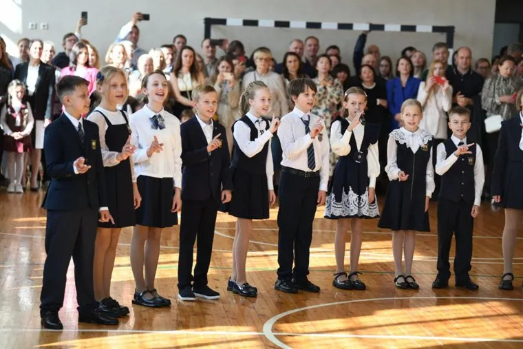 11:33 Губернаторский лицей завершает свою линейку. Под конец ученики выступили с песней, а преподаватели их поддерживали с первых рядов.