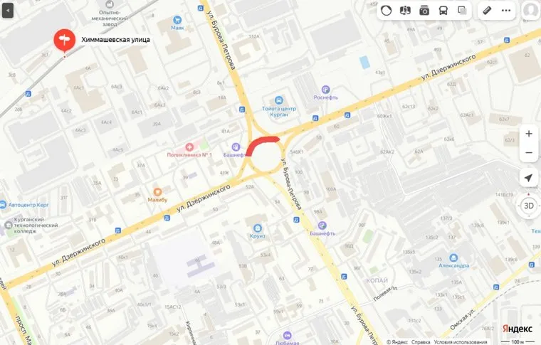 В Кургане на перекрестке улиц Бурова-Петрова и Дзержинского продлили ограничение на движение транспорта. На участке кольцевой развязки коммунальщики занимаются ремонтом сетей, указано в постановлении мэрии города.