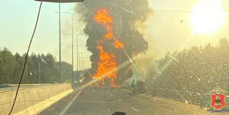 В Тверской области на трассе М-11 «Нева» произошло серьезное ДТП с бензовозом, он взорвался и это повлекло за собой пожар, видимый за несколько километров от места происшествия. Сам водитель бензовоза погиб, а движение в сторону Санкт-Петербурга перекрыто.