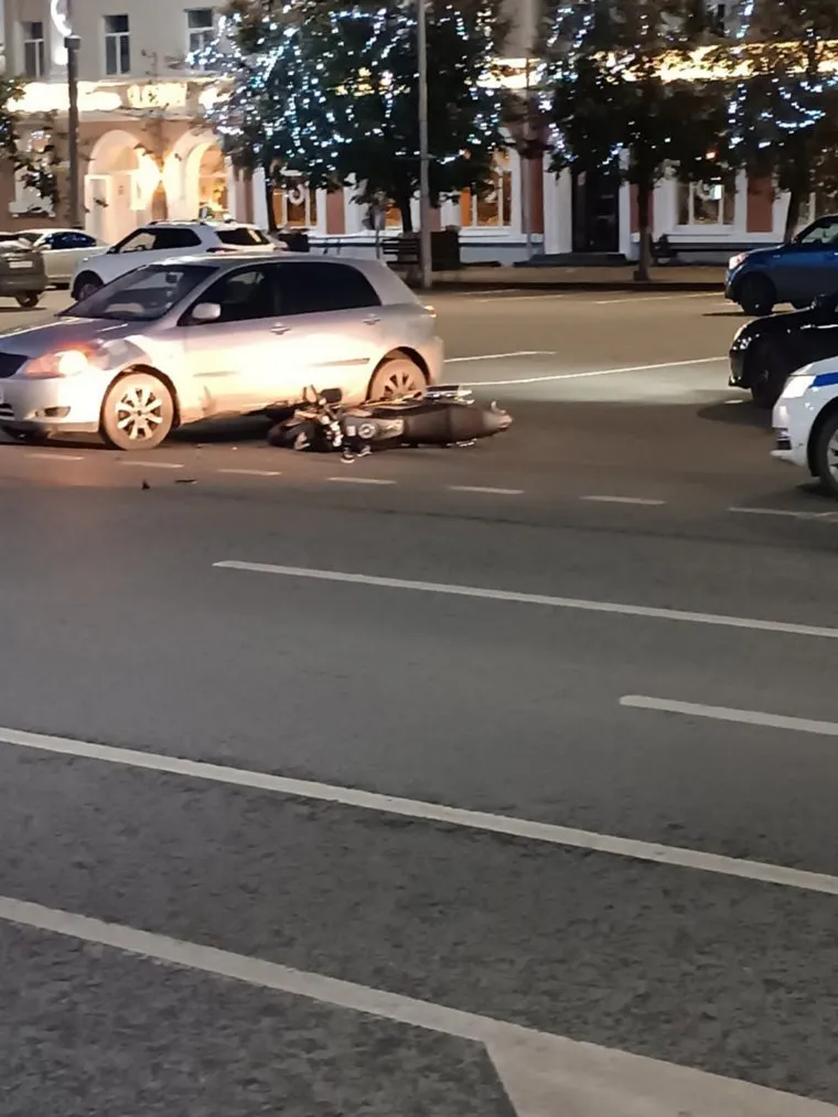 «Машина выезжала налево в сторону Ленина, а мотоциклист ехал по второй полосе в сторону почты. Они столкнулись, и мотоцикл упал», — рассказал очевидец.