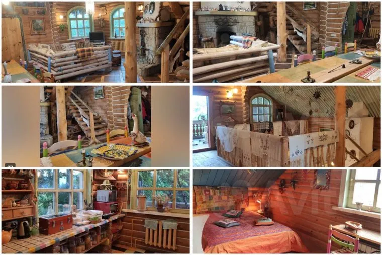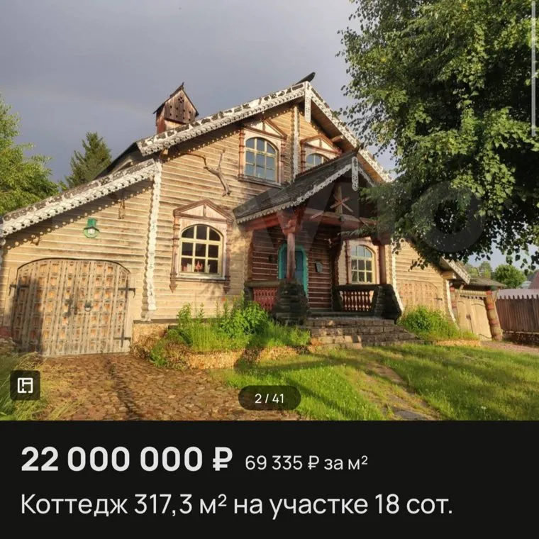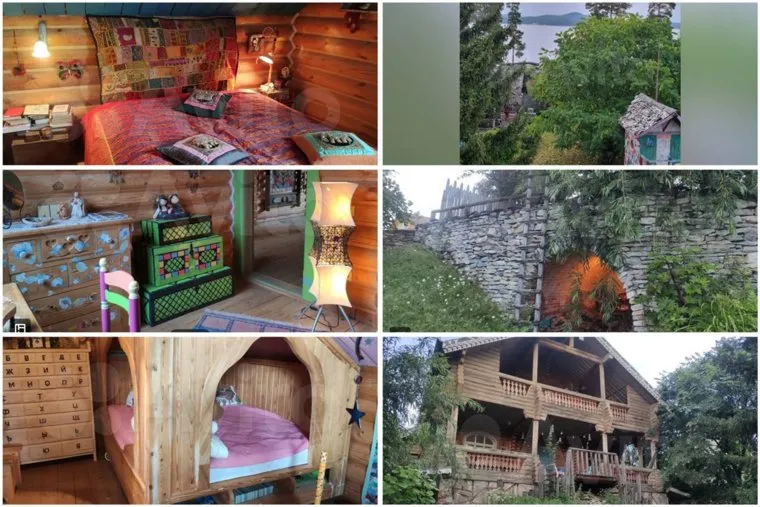 «Сказочный дом на берегу чистейшего озера Таватуй! Спроектирован из круглых бревен, архитекторами Эконoмовым и Смирновой. Фасады дома решены в стиле „сказочного модерна“ и созвучны с работами Васнецова, Билибина, Поленова», — пишет автор объявления.