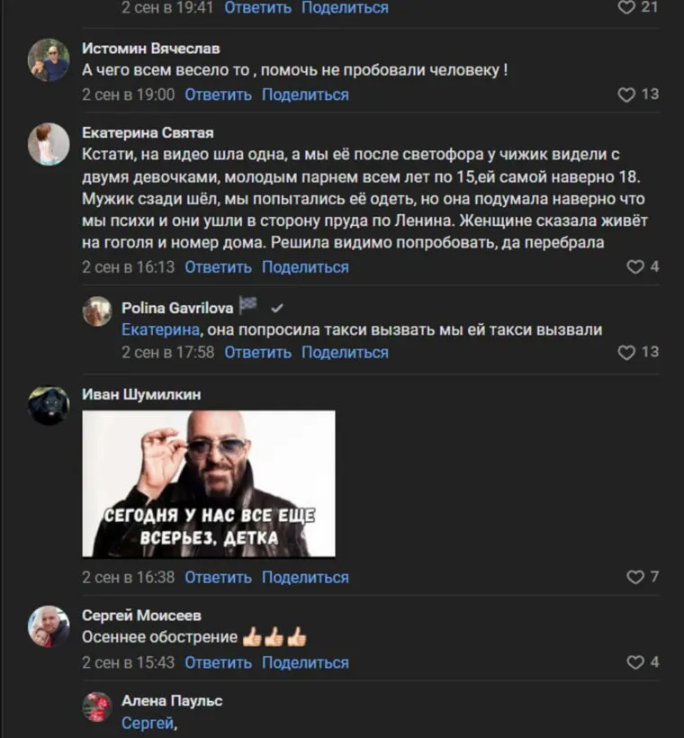 Другие комментаторы посчитали, что девушке нужна помощь. «А чего всем весело то, помочь не пробовали человеку», — удивляется горожанин.