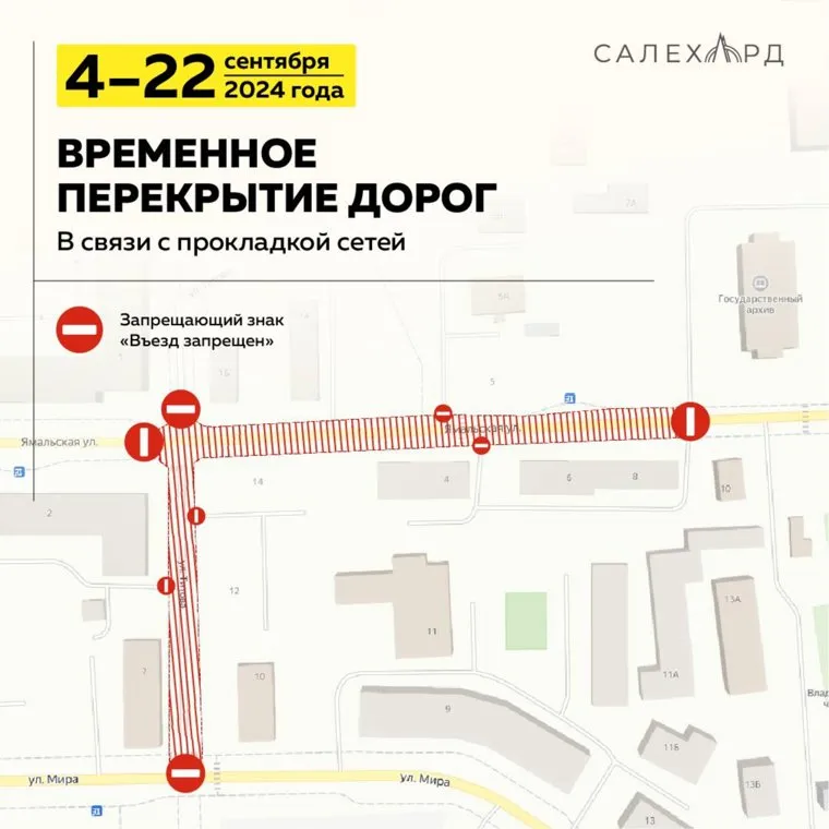 В Салехарде временно перекрывают движение по улицам Ямальская и Титова в связи с прокладкой сетей. Об этом сообщает администрация города.