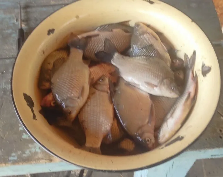 Курганец наловил полный таз рыбы у Белого Яра. Фото