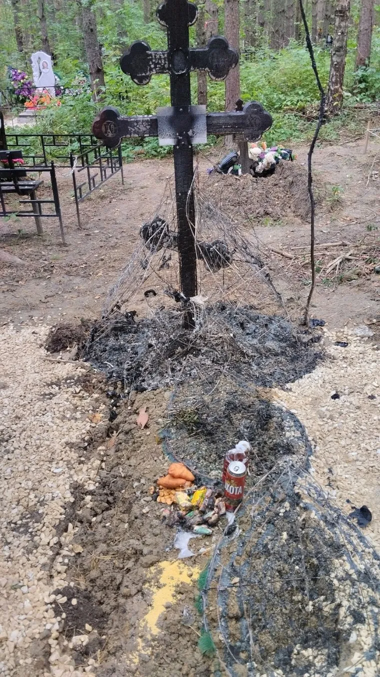 Под Екатеринбургом неизвестные сожгли могилу ветерана СВО. Фото