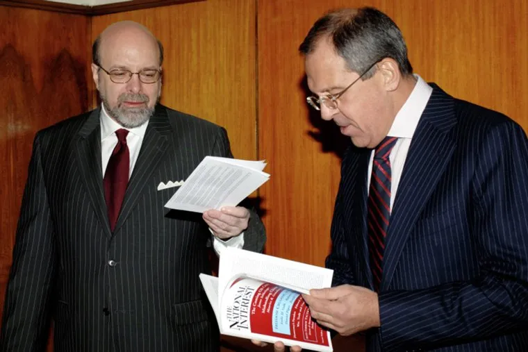 Саймс считается заслуженным экспертом по России (на фото Дмитрий Саймс и Сергей Лавров в 2006 году)