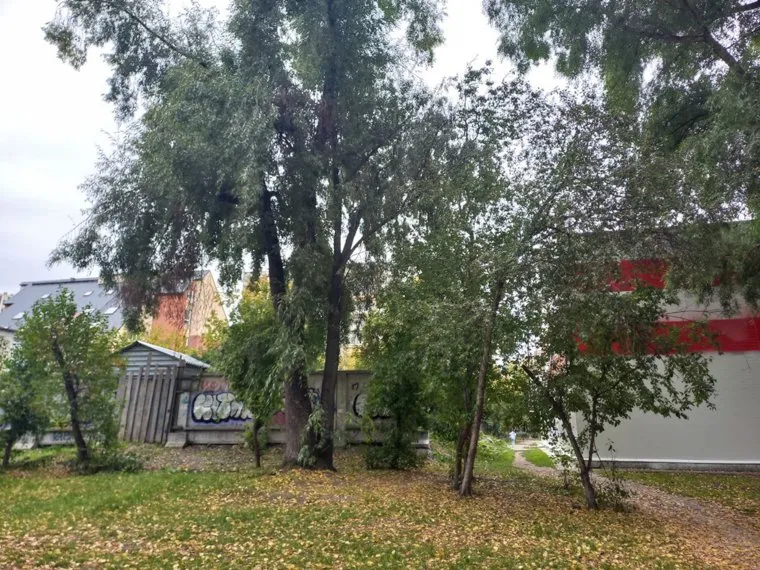 На этом участке, по проекту, парк Энгельса потеряет два ряда деревьев