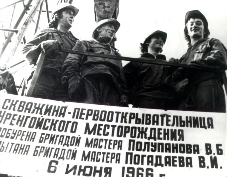 6 июня 1966 года было открыто уникальное по размерам, строению и запасам углеводородов Уренгойское нефтегазоконденсатное месторождение. На фото — бригада первооткрывателей