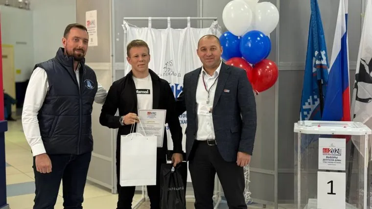 В Муравленко впервые голосующих избирателей тоже встречают в торжественной обстановке. Общественный помощник УПЧ в городе Марина Елисеева поздравила молодого избирателя, отметив важность его голоса.