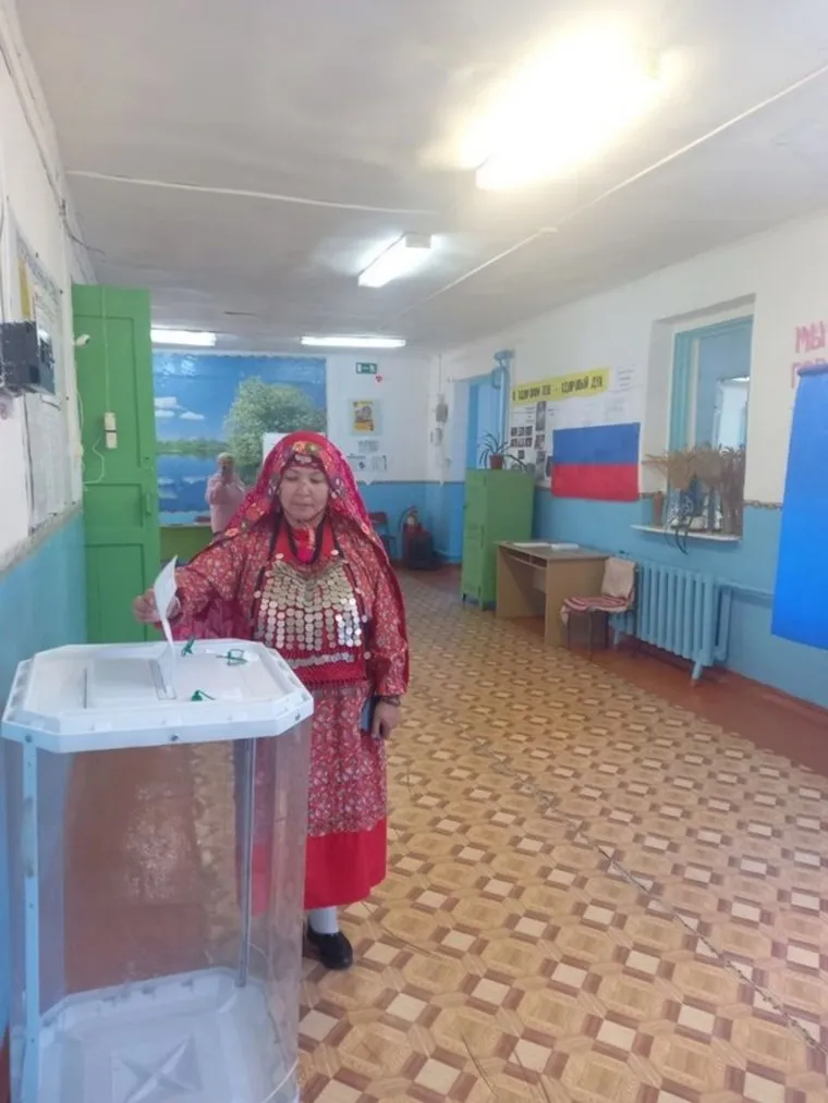 10:44 Первый избиратель в Сафакулевском округе. Жительница деревни Абултаево пришла на участок в башкирском национальном костюме — VK Курганский взгляд.