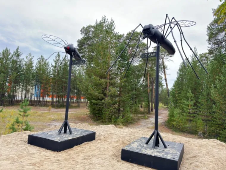 В Покачах (ХМАО) установили новые арт-объекты, изображающие огромного комара и мошку. Власти сообщили, что двухметровые скульптуры изготовили и подарили городу сотрудники одного из нефтесервисных предприятий.