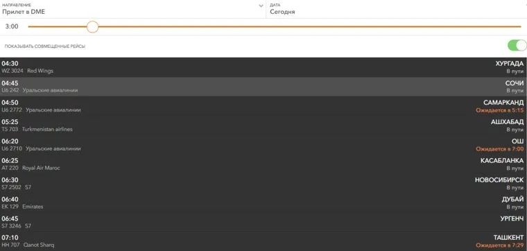 Расписание прилетов в Домодедово