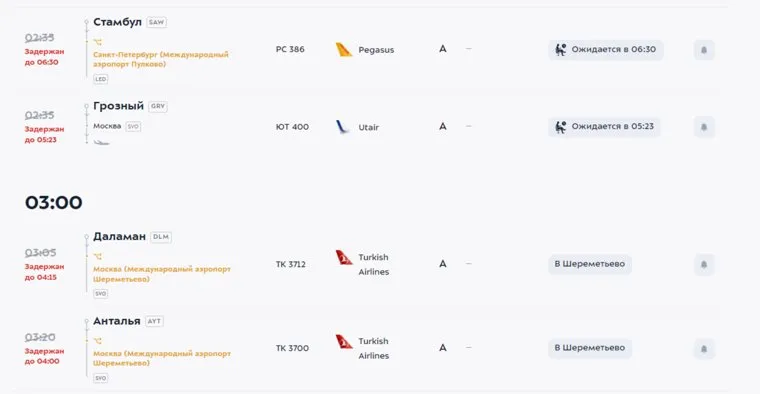 Расписание прилетов во Внуково