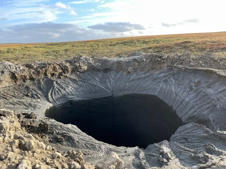 В Ямальском районе возле Бованенково появилась глубокая черная воронка. Об этом сообщил очевидец в соцсетях.