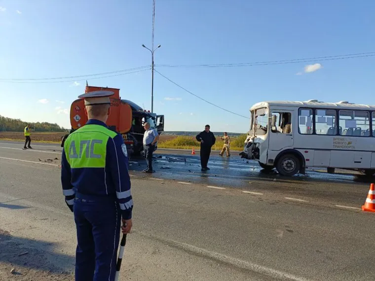 На трассе Екатеринбург — Тюмень бензовоз снес автобус с 20 пассажирами. Фото