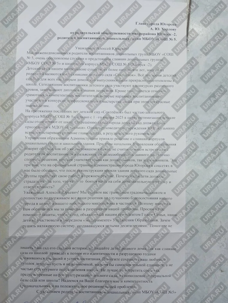 Родители дошкольников написали петицию главе Югорска с просьбой не объединять детсад и школу