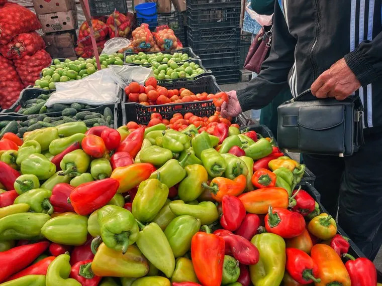 Кроме товаров местных производителей, которые предлагают в основном овощи, продают на ярмарке орехи, сухофрукты, мед и фрукты из других стран и регионов. На прилавках можно купить и сладости: лимонады, цукаты, халву, пастилу и другое.