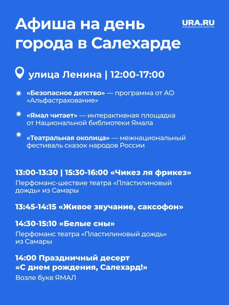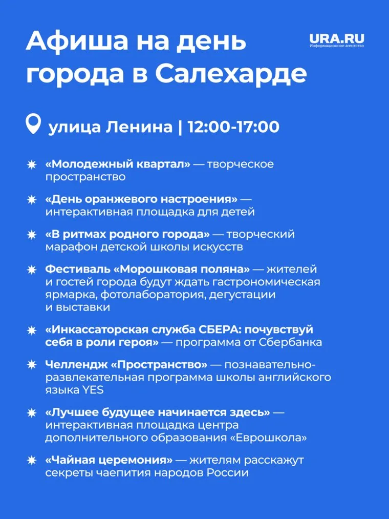 «Градусы», «Рефлекс», дегустации и ярмарки: как Салехард отпразднует День города. Инфографика