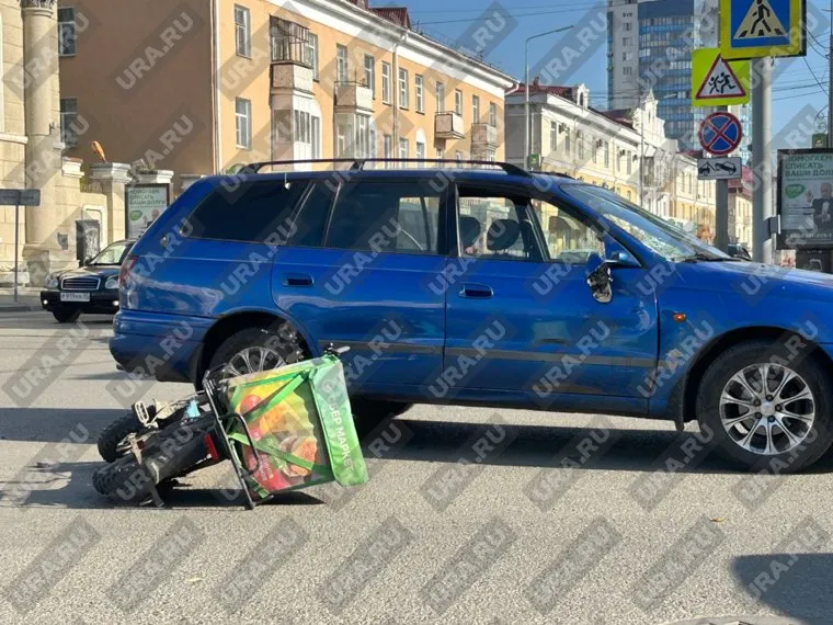 В центре Кургана иномарка сбила велосипедиста из службы доставки. Фото, видео