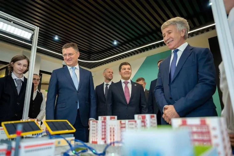 Заместитель председателя правительства, бывший министр энергетики России Александр Новак, глава Пуровского района Кирилл Трапезников, глава ЯНАО Дмитрий Артюхов, глава ПАО «Новатэк» Леонид Михельсон