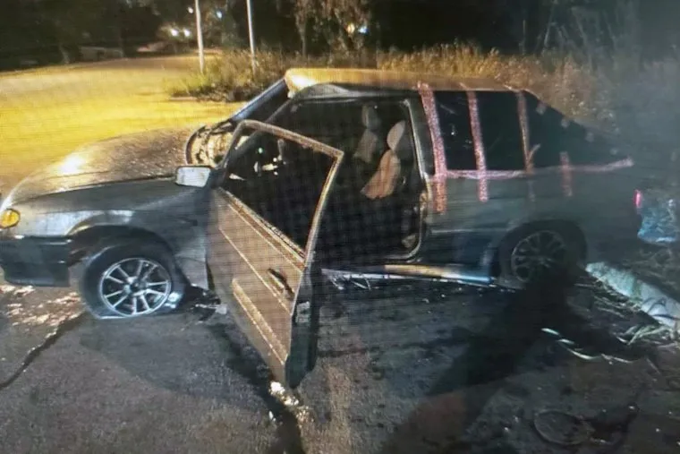 Автоугонщик перевернулся на машине и врезался в дерево в Магнитогорске. Фото