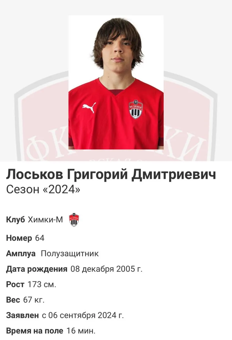 «Григорий Лоськов дебютировал за молодежку ФК „Химки“ в матче с тамбовским „Спартаком“. Помочь команде сыну легенды „Локомотива“ не удалось, его команда уступила со счетом 0:3», — передает корреспондент.