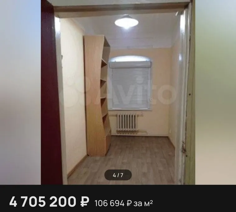 «Нежилое помещение, цокольный этаж, общей площадью 44,1 кв. м. Екатеринбург, улица Горького, 33. Стоимость — 4 705 200 рублей», — сказано в объявлении.
