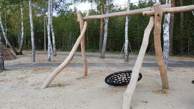 Вандалы сломали новые качели в экопарке Кургана. Фото