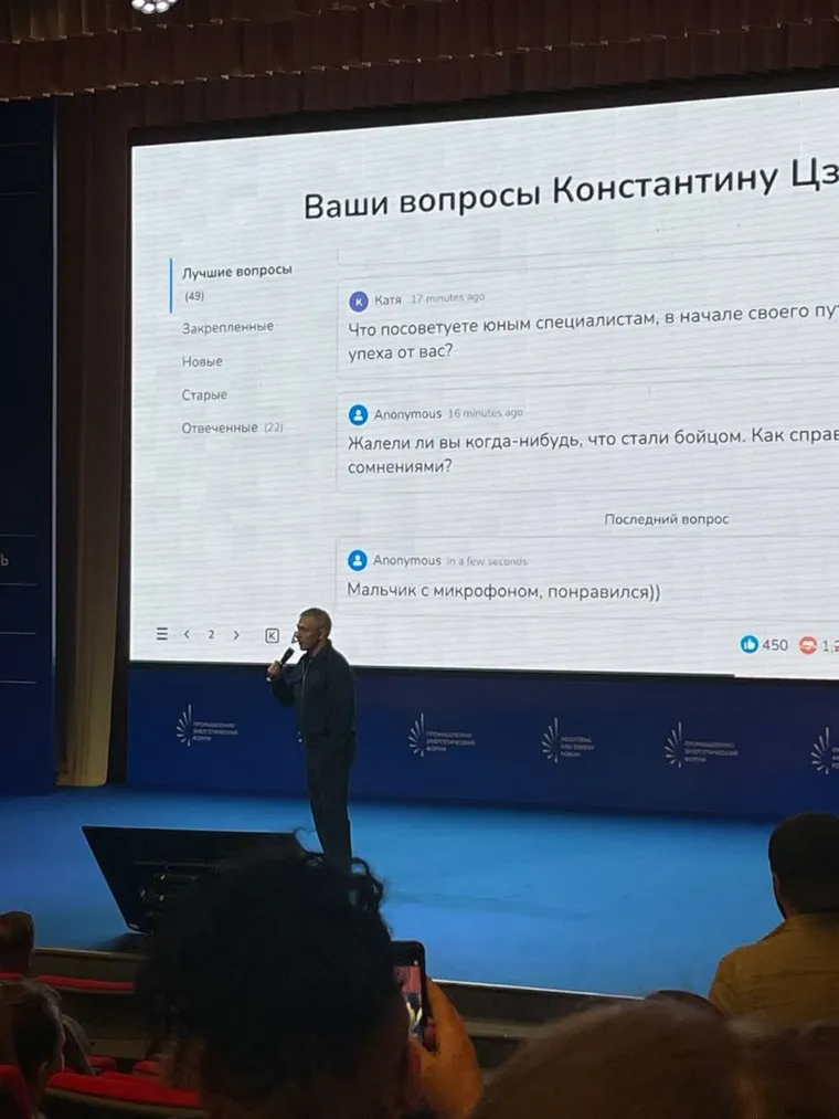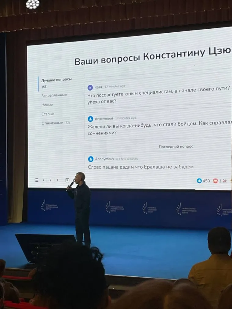 Во время промышленно-энергетического форума TNF посетители площадки попытались сорвать выступление боксера Константина Цзю (уроженец Свердловской области). Спортсмену предложили ответить на вопросы, которые транслировались на большом экране. Однако гости начали писать о желании познакомиться с боксером и просьбы занять деньги.