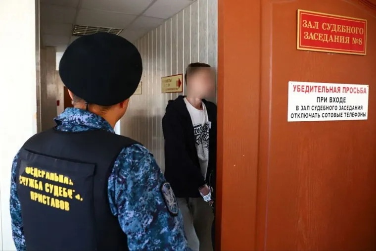Юношу провели в зал в наручниках. Заседание пройдет в закрытом режиме, потому что обвиняемый и потерпевшая — несовершеннолетние.