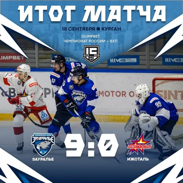 «В ярком, динамичном матче, в котором у ХК „Зауралье“ получалось почти все, с разгромным счетом выигрываем у „Ижстали“! Итог матча 9:0», — говорится в сообщении, опубликованном в группе ХК «Зауралье» в соцсети «ВКонтакте».