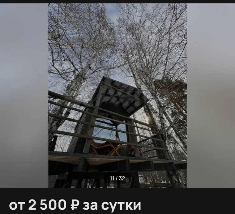 В поселке Исток под Екатеринбургом за 2,5 тысячи рублей в сутки сдают дом на дереве с панорамными окнами, из которых видно лес. Такое объявление появилось на сайте Avito.