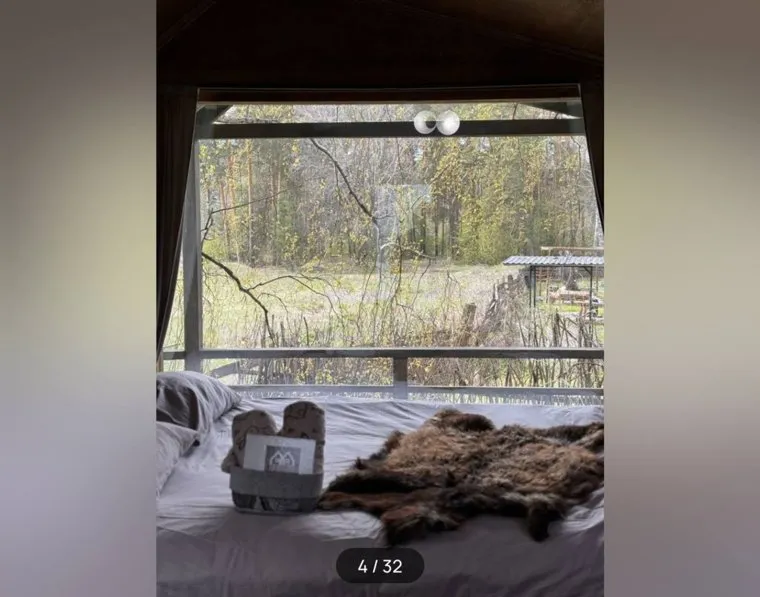 «Дом на дереве. Уникальный домик для отдыха, 12 квадратных метров, оснащен всем необходимым. Большая двуспальная кровать, панорамные окна с видом на лес. Кухонный уголок ocнащeн хoлодильником, плиткoй, микpоволновкoй, кофемaшинoй, чайникoм», — пишет автор объявления.