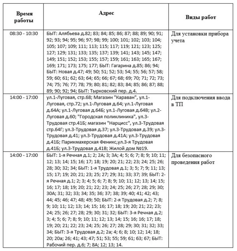 С графиком отключений и адресами, где они произойдут, можно ознакомиться ниже. По всем вопросам необходимо обращаться по телефону оператора диспетчерской службы 222-132.