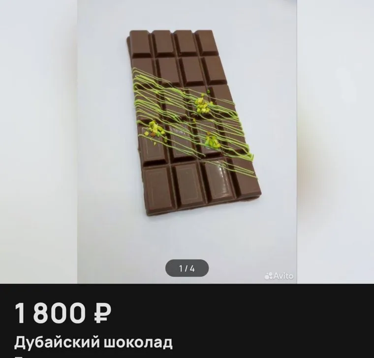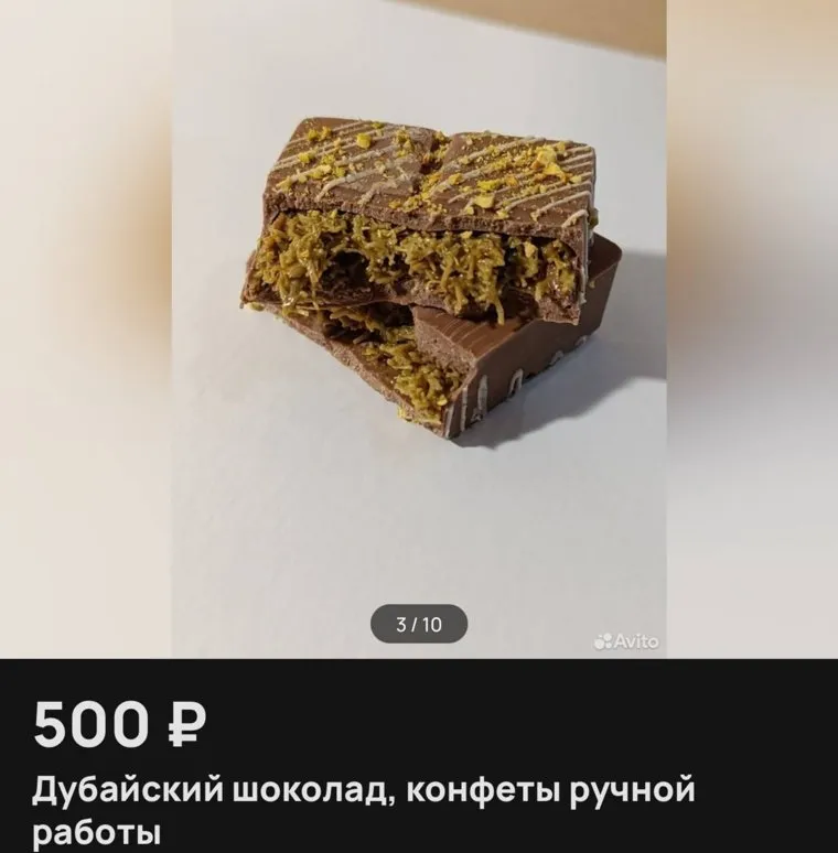 За 1800 рублей вы получите 210 граммов шоколадки. А за 500 рублей предлагают конфеты ручной работы, сделанные по рецепту «дубайского шоколада».