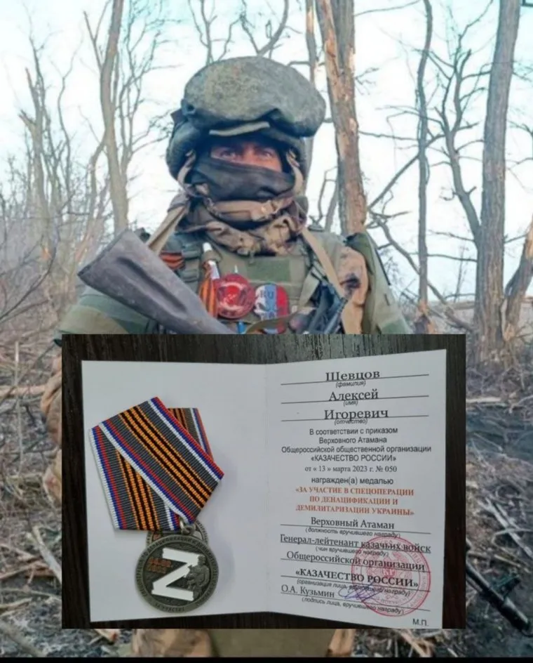 «Поздравляем Алексея с награждением медалью общественной организации „Казачество России“», — сообщается в telegram-канале «Волонтеры ГДН». Удостоверение к награде подписано верховным атаманом Олегом Кузьминым.