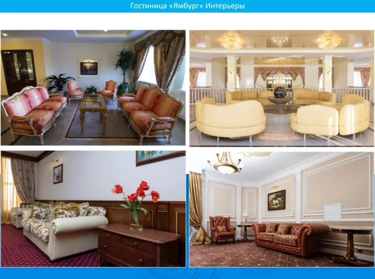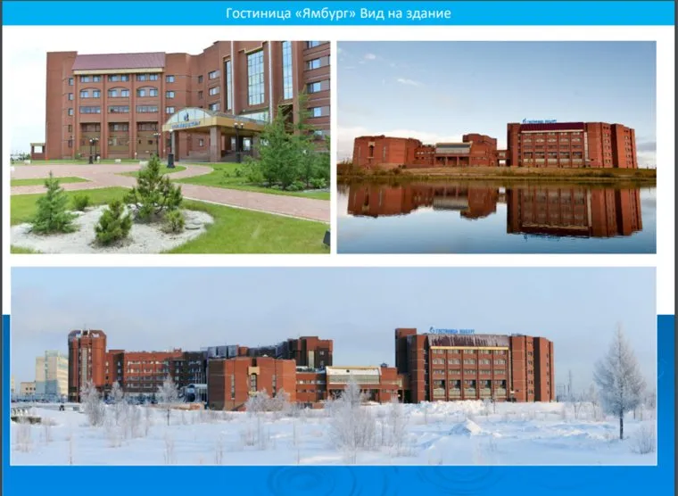 По данным источника, гостиница «Ямбург», непрофильный актив ООО «Газпром добыча Ямбург», построена в 2008 году. В четырехзвездочном отеле 72 номера высшей категории, четыре из которых люксовые, 27 номеров — категории «Студия», 31 одноместный и девять двухместных номеров. В инфраструктуру гостиницы входят ресторан, два бара, банкетный зал, бизнес-центр, комната переговоров, фитнес-холл, сауна, мини-химчистка.