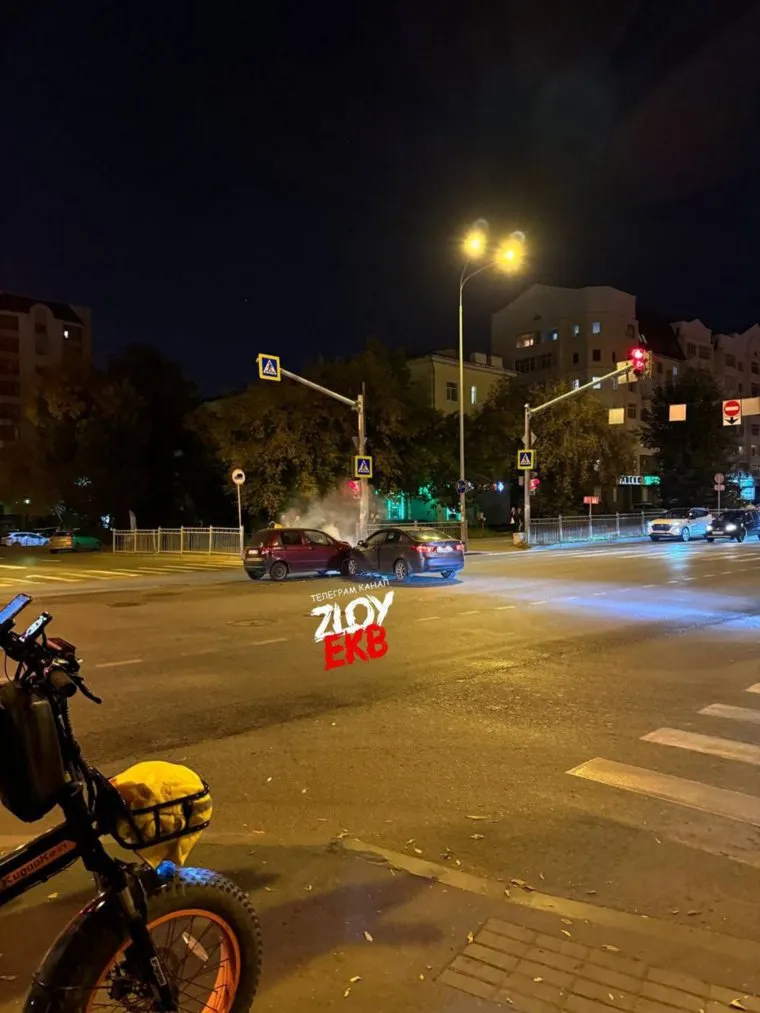 В Екатеринбурге на перекрестке между улицами Степана Разина и Фурманова врезались два автомобиля. Очевидица рассказала, что у участников аварии были травмы и шла кровь.