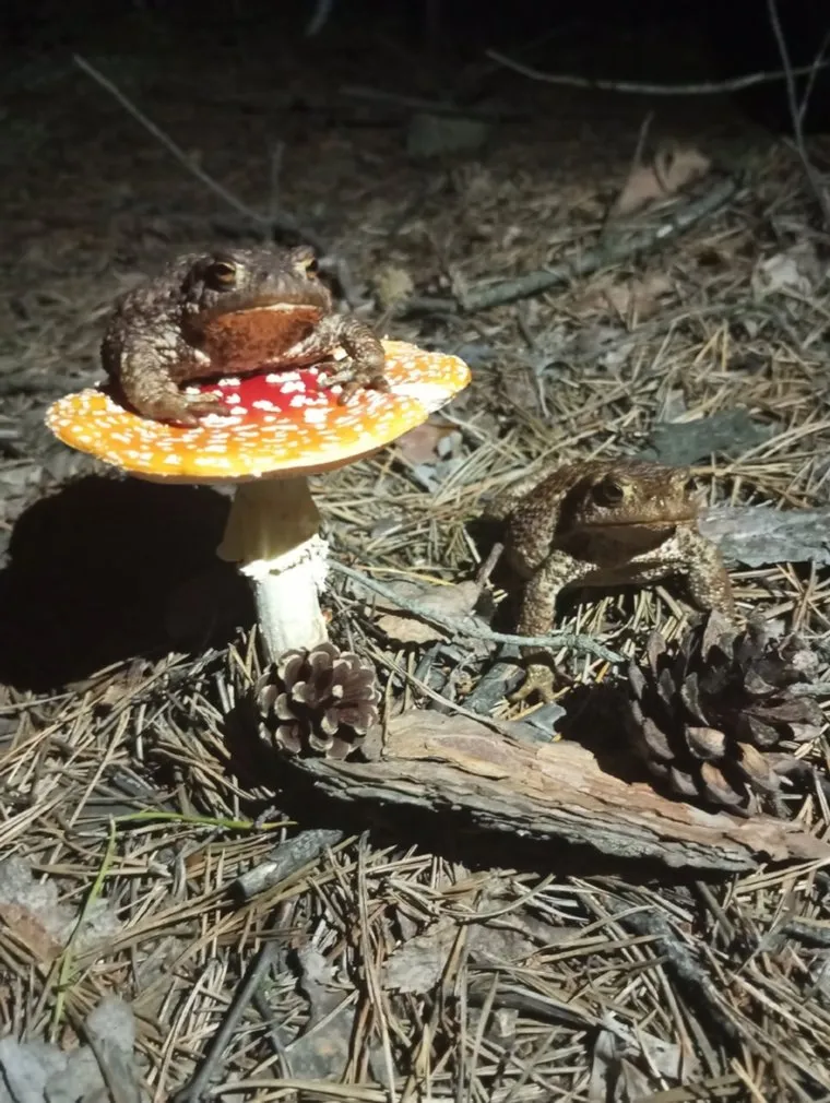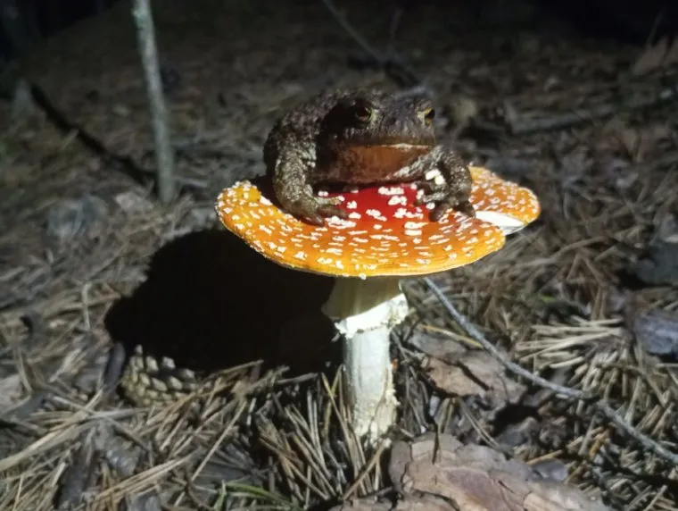 Свердловчанин, отправившийся ночью за грибами, столкнулся с необычным явлением: лес в окрестностях поселков Гати и Исети (под Екатеринбургом) оказался полон жаб. Фотографиями грибник поделился в соцсетях.