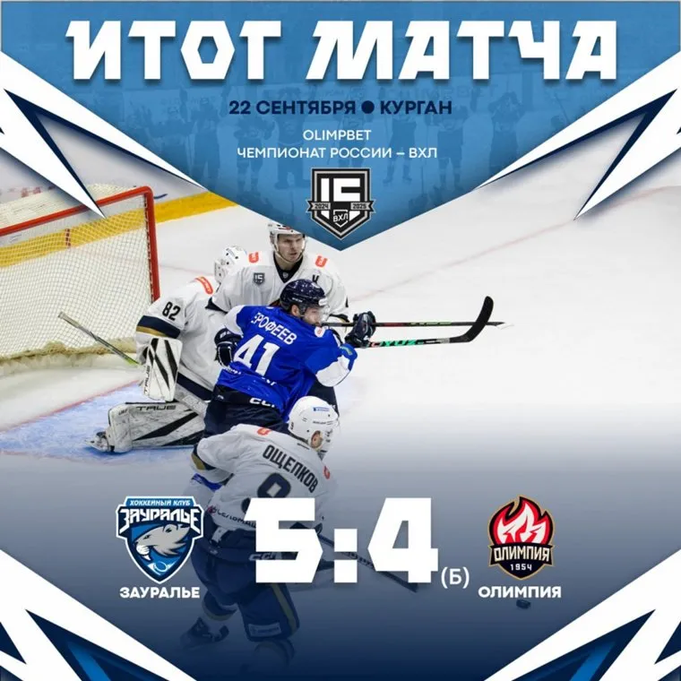 «22 сентября ХК „Зауралье“ одержал победу над новичком лиги ХК „Олимпия“ из Кировской области. Счет матча 5:4 в пользу курганцев», — говорится в сообщении, опубликованном в telegram-канале ХК «Зауралье».