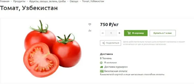 «Томаты, Узбекистан. Стоимость: 750 рублей за килограмм», — такая цена указана на сайте одного из рынков Тюмени.