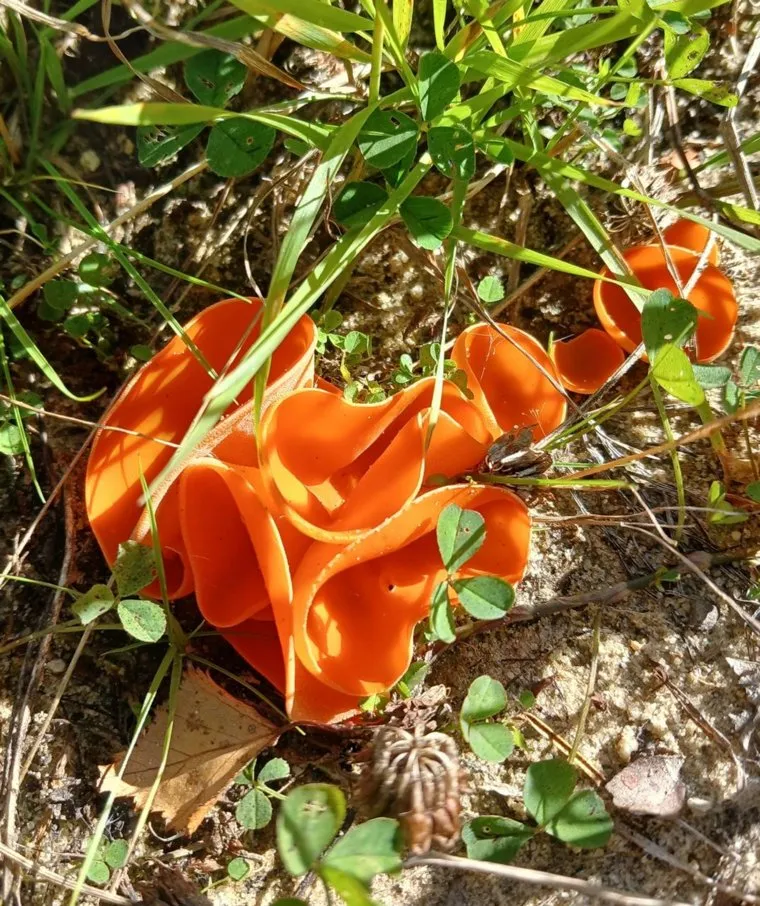 Сотрудники Природнадзора нашли в лесу ХМАО гриб, который подают в ресторанах с ликером на десерт. Дикоросы называются Алеврия оранжевая, внешне они напоминают апельсиновую корку из-за яркого окраса и причудливой формы. Фотографией находки инспекторы поделились в соцсети «ВКонтакте».