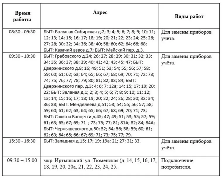 С графиком отключений и адресами, где они произойдут, можно ознакомиться ниже. По всем вопросам необходимо обращаться по телефону оператора диспетчерской службы 222-132.