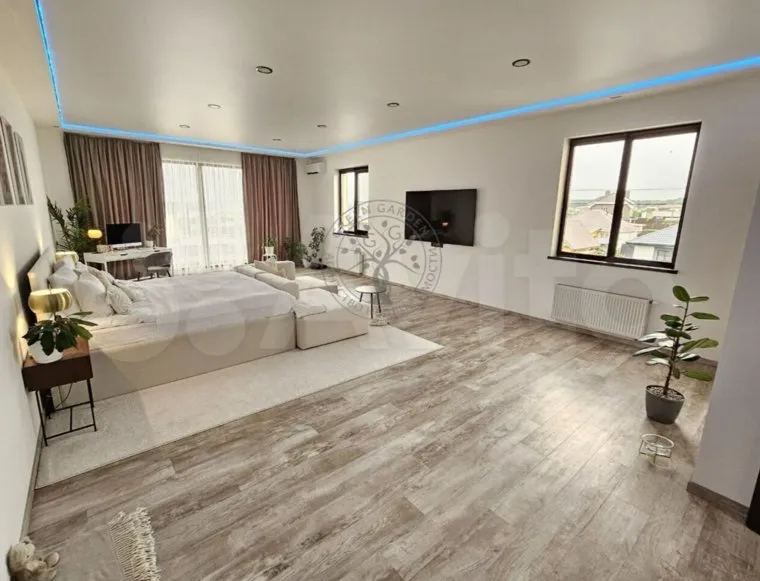 Коттедж имеет просторные жилые комнаты, зоны для приема пищи и приемные залы, а также есть прачечная, бассейн, хамам и парная. Для размещения гостей предусмотрен отдельный этаж. Всего в доме три жилых этажа и подвал, где находится бойлерная. Цена одного кв. м. — 82 645 рублей.