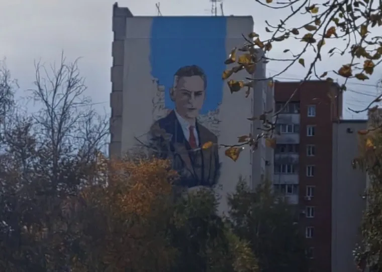 Большую картину на здании десятиэтажного дома создают в Кургане в честь разведчика Рихарда Зорге. Об этом сообщили очевидцы.