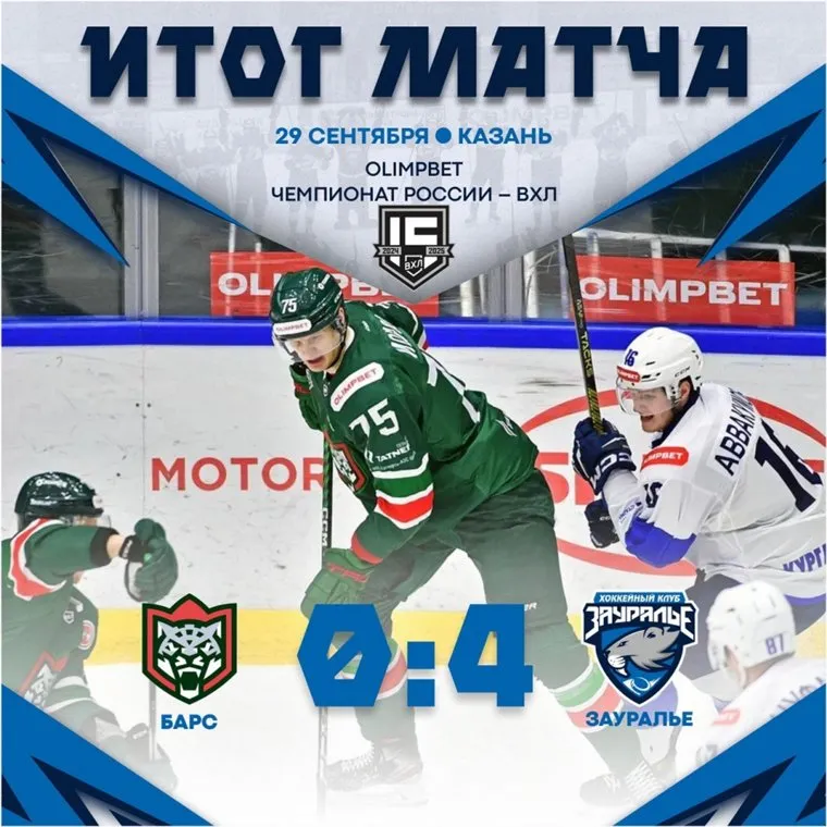 «ХК „Зауралье“ победил клуб „Барс“ со счетом 4:0 в Казани. Качественно отпахали в атаке и в обороне, очень хорошо использовали большинство и забираем в основное время важные два очка», — говорится в сообщении, опубликованном в telegram-канале ХК «Зауралье».