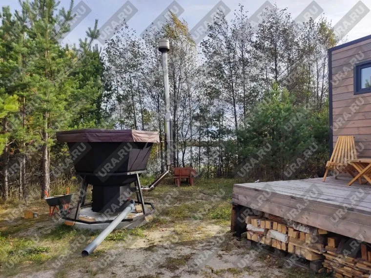 Рядом с домами установлены чаны для купания с возможностью подогрева воды дровами. Один уже почти готов для эксплуатации — подведены трубы. Другие пока стоят не подключенными. На террасе домиков есть деревянная мебель, гамаки. От домиков дорога ведет к одному из озер. «Но пляж не благоустроен. Вода затянута тиной и растут камыши», — уточняет корреспондент. В момент посещения журналиста все домики были свободны.