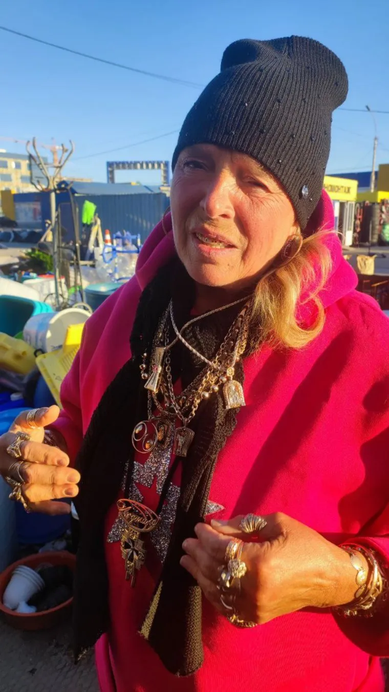 Хозяйка всего этого товара выделяется на фоне остальных продавцов. У женщины громко играют отечественные хиты 90-х, а шею и руки украшают килограммы золота — такому количеству цепей могут позавидовать даже американские звезды хип-хопа. Людмила признается, что они ей совсем не чужды.